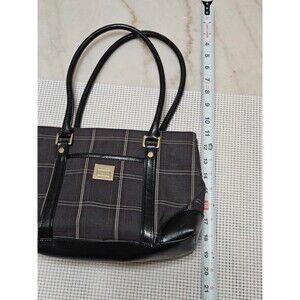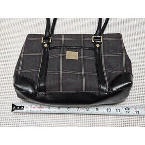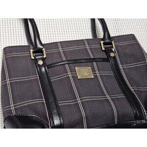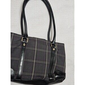 Liz Claiborne gray with red & cream plaid shoulder bag lots of storage