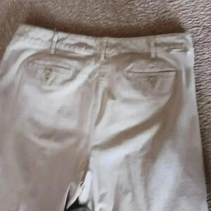 these are your traditional khaki pants with two pockets in the front and two slip-type pockets with buttons on the back. they come from a smoke-free, pet-free home. laid flat, the waist is 19 in, the inseam is 29 in, and from the waist to the Hem is 39 in. the color in the picture of the tag is the most accurate color.
