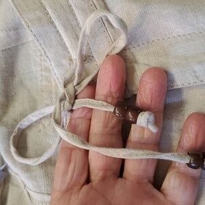 These beautiful 100% linen pants are in excellent condition and quality. zipper front with button and tie. 2 big front pockets and 2 button pockets in the back.They are a 10 normal regular. Waist flat measurement is 17". inseam is 30.5 ". Top to bottom length is 40.5".