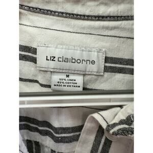 Liz Claiborne linen stripe sleeveless button up dress womens medium coastal cottagecore nautical breathable casual