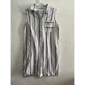 Liz Claiborne linen stripe sleeveless button up dress womens medium coastal