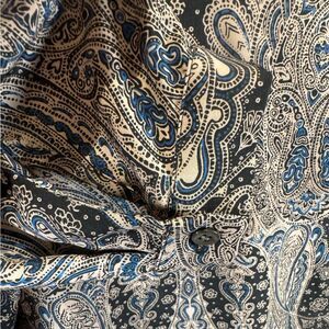 Beautiful paisley print of black cream and blues. Button down top. EUC
