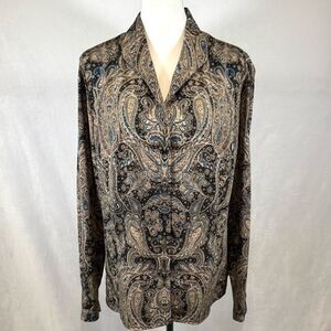 Liz Claiborne long sleeve paisley print button down top size 16