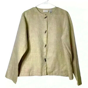 Liz Claiborne oatmeal 100% linen vintage long sleeve minimalist with pocket-SZ L