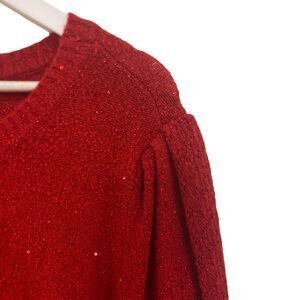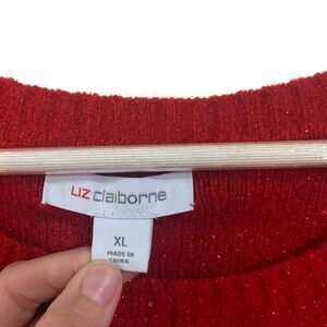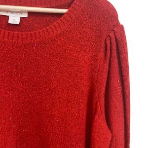 Liz Claiborne red sparkly metallic sequin long puff sleeve crew neck sweater XL