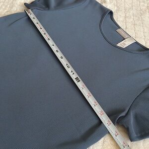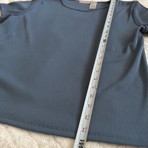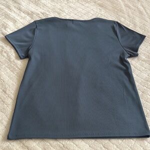 All items will be shipped within 48 hours. This is a blue, ribbed T-shirt. Worn once. Feel free to message me if you have any additional questions.