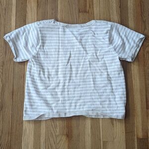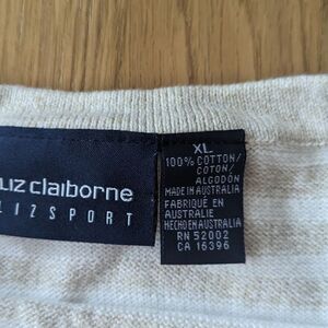 Liz Claiborne short sleeve sweater tan & white striped length 22" pit to pit 21"