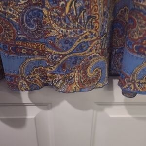 Empire powder blue and paisley print dress size 4 petite. There is a cute and different hemline on this chafaune like material. {Box4}