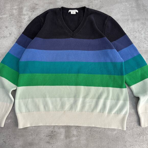 Liz Claiborne striped knit v-neck sweater 100% cotton blue and green size XL