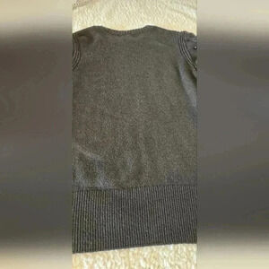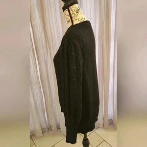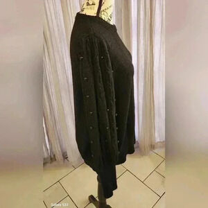 This adorable black sweater from Liz Claiborne features puffy sleeves with black pearl details. Size large this sweater is in good pre-owned condition and shows some signs of minor wash wear.