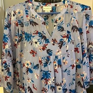 Great condition top. Blue w floral. Glittery thread. It is see through & comes w matching tank to wear underneath.