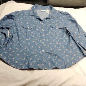 Liz Claiborne woman women's western demin looking long sleeve button down shirt size 18W