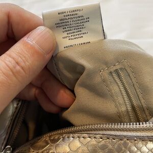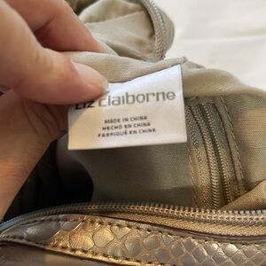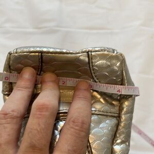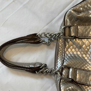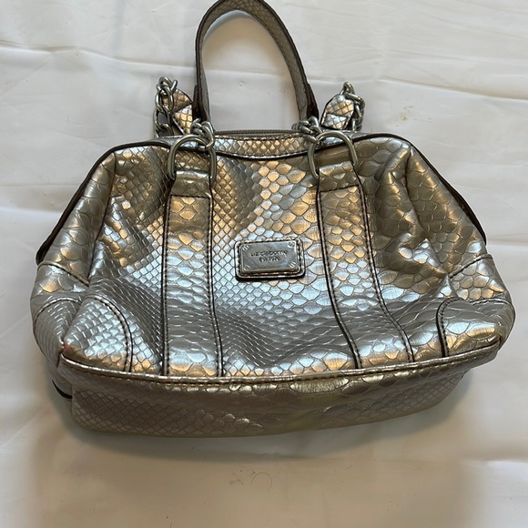 Liz Claiborne women’s bright silver faux crocodile handle bag