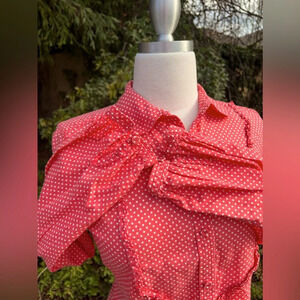 Liz Claiborne button-down long sleeve lightweight blouse with coral base and white polkadot; SUPER CUTE!!!! in good condition 😁