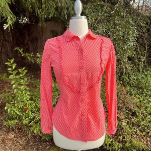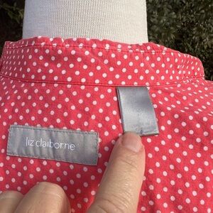 Liz Claiborne women’s button-down color coral base with white polkadot