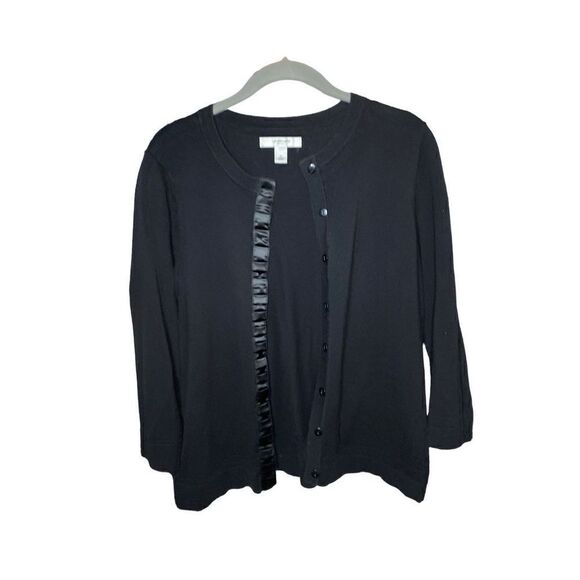Liz Claiborne women’s black satin trim button up Cardigan medium