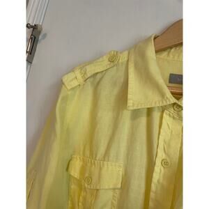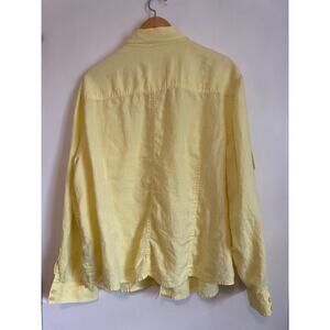 Liz Claiborne yellow linen button up shirt pockets long roll tab sleeves 3X