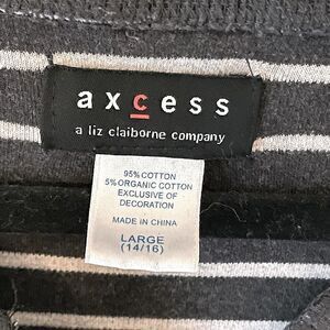 Liz Claiborne (Axcess) Dark Gray and White Long Sleeve Top. Size Large.