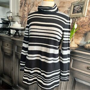 Liz Claiborne Black and White Striped Turtleneck Sweater Size Lg