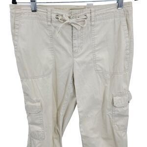 Liz Claiborne Lizwear Cropped Cargo Pants 6 Beige Drawstring Pockets Granola