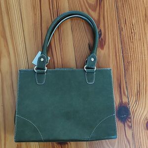 Liz Claiborne Olive Green 2-Handle Bow Structured Handbag NWT Vintage