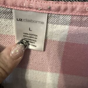 Liz Claiborne Pink and Black Plaid Button Down Shirt