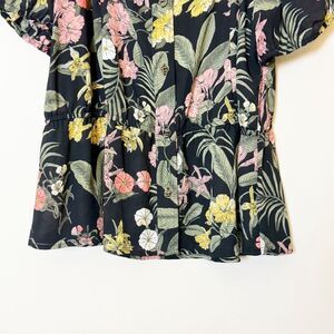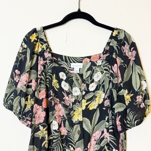 Liz Claiborne Tropical Floral Square Neck Blouse (XL Petite) Off the Shoulder