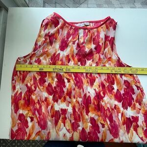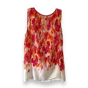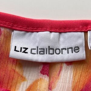 Liz Claiborne Women's Floral Sleeveless V-neck Cut-out Blouse Top Orange Large