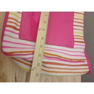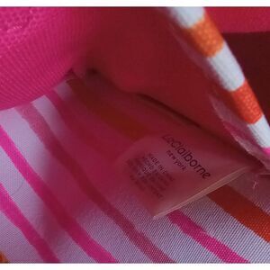 Pre owned gently used large Liz Claiborne bag. Handbag straps &open top. Wallet attached with tether. Large enough to be used for a small tote for day trips. Fabric is a combination of neoprene type, canvas and pattened faux leather.