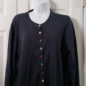 Liz Claiborne woman navy blue cardigan with multicolor buttons