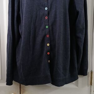 Liz Claiborne woman navy blue cardigan with multicolor buttons Sz 1X NWOT