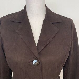 Liz Clairborn Blazer Jacket Woman Size 4 Brown Faux Suede Pocket Career Office