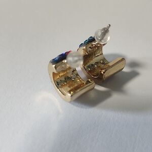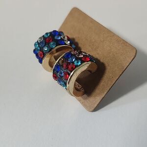 Add a pop of color to your outfit with these stunning rhinestone crystal hoop earrings. Featuring vibrant red, blue, and gold tones, these earrings are perfect for any occasion.