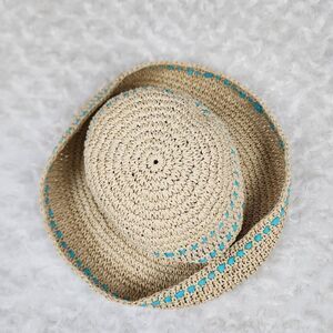 Liz Clairborne Knitted Straw Sun Hat Natural Teal