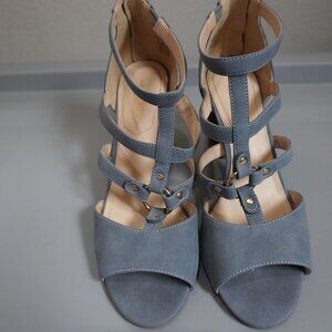 Liz Clairborne Refined Comfort gray blue strappy sandal chunky heel Size…