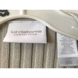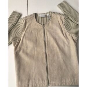 Liz Clairborne Suede Front Sweater Knit Arms & Back Beige SzPL Pre-Owned