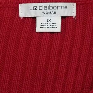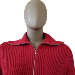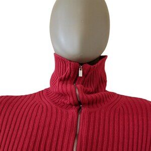Liz Clairborne Sweater Womans 1X Red Rib-Knit Turtleneck Full Zip Cardigan