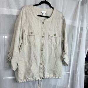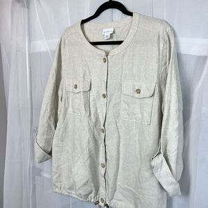 Liz Clairborne linen short sleeve button down XXL safari outdoor farmhouse