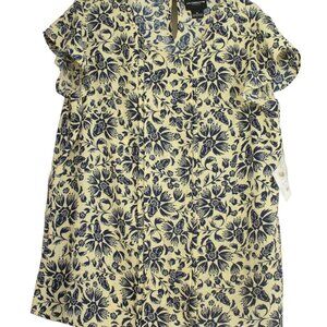 Liz Clairbourne Career Yellow Blouse with Blue Flowers