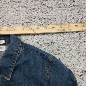Liz Claireborne Villager Stretch Denim Jacket Women's 14. Five Pockets.... Collard Button- up. Blue Denim.