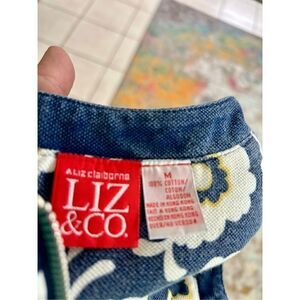 Liz & Co 100% Cotton Floral Dress in Navy and White size medium. Sleeveless