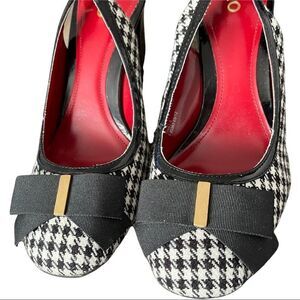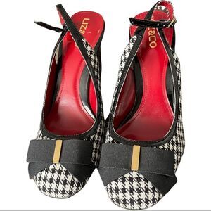 Liz & Co B&W Houndstooth with Ribbon Sling Back Heels Sz 7M