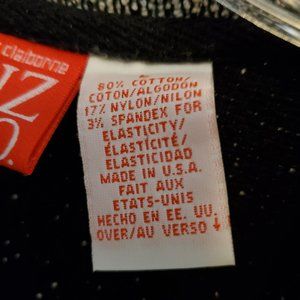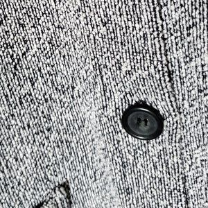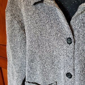 Cute, short black & white tweedy cardigan that has a jacket style. 4 buttons, 2 pockets. Cotton/nylon/spandex blend gives some stretch. Says dry clean but can be washed gently cold w/ air dry flat. 21" across from underarms and 21" long (good for a shorter person). Pet free, fragrance free, smoke free home. Great condition!
