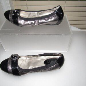 Liz & Co Cap-Toe Buckle Leather Ballet Flats Size 7.5M | Metallic Chic Feminine