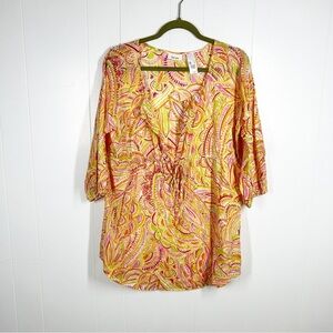 Liz & Co Orange and Pink Tropical Swim Cover Up Large