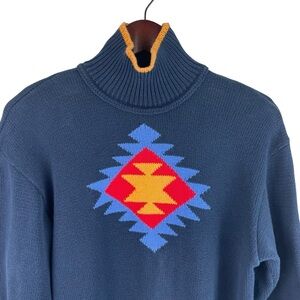 Liz & Co. Vintage | Navy Gold Trim Aztec Mock Neck Sweater