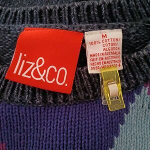 Liz & Co Vintage Sweater 100% Cotton Diamond Shape Grannycore Preppy Modest