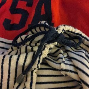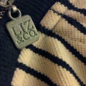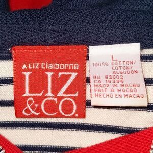 Very cool blue and white striped Liz & Co. Vintage hooded pullover sweatshirt