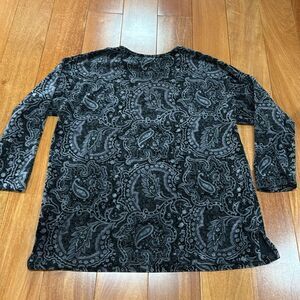 Liz & Co Women’s Pretty Velvet Paisley 3/4 sleeve top SZ M