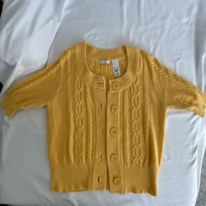 Liz & Co. Yellow Chunky Cable Knit Cardigan Sweater